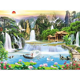 Tranh Sơn Thủy Hữu Tình cực đẹp thích hợp treo phòng khách, phòng làm việc PT743