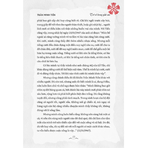 Cuốn sách Trở về trong giấc mơ được nhà văn Đặng Vương Hưng sưu tầm, tuyển chọn, tập hợp từ những trang nhật ký của liệt sĩ Trần Minh Tiến viết trong khoảng thời gian từ tháng 11/1966 đến tháng 3/1968, ghi lại những tháng ngày tập luyện gian nan, vất vả để chuẩn bị cho cuộc hành quân vượt Trường Sơn vào miền Nam chiến đấu.