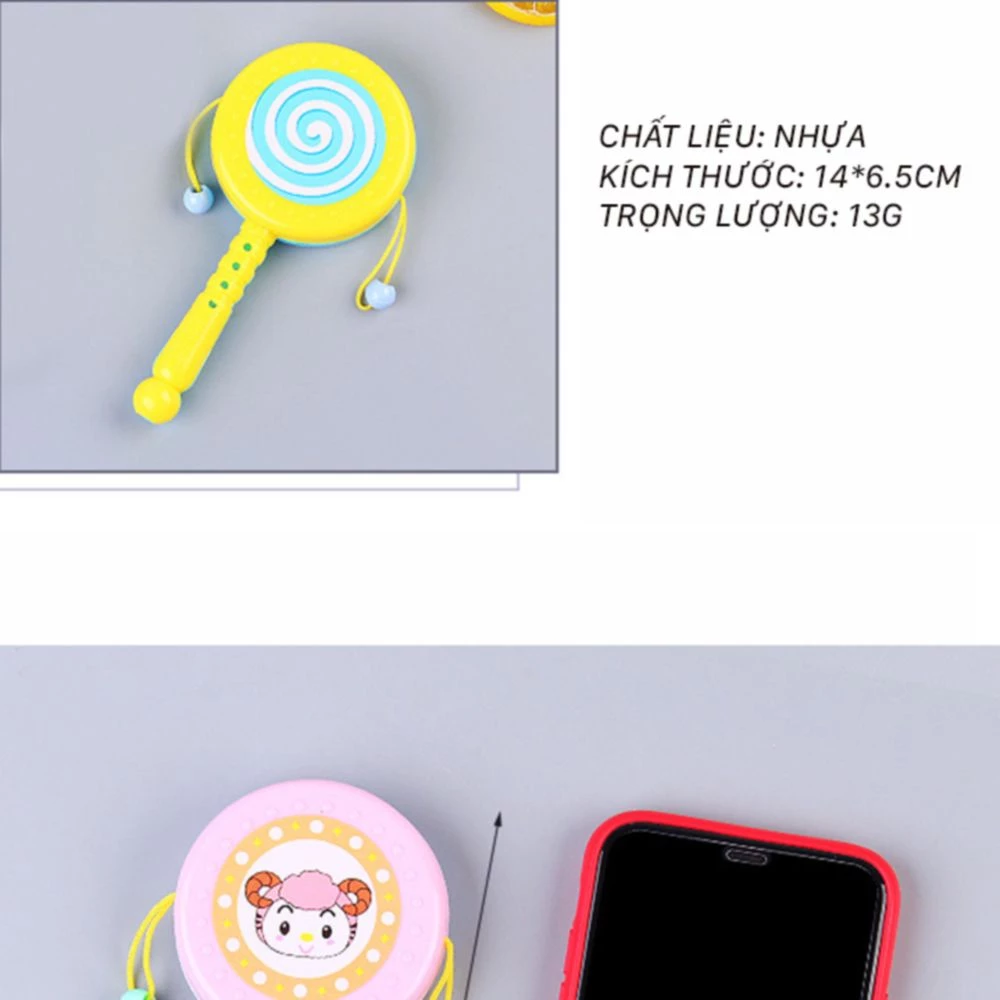MÔ TẢ SẢN PHẨM ĐỒ CHƠI LỤC LẠC CHO BÉ: Trống lục lạc cho bé chất liệu: Được làm từ chất liệu nhựa ABS chuyên sản xuất các loại đồ chơi trẻ em, an toàn