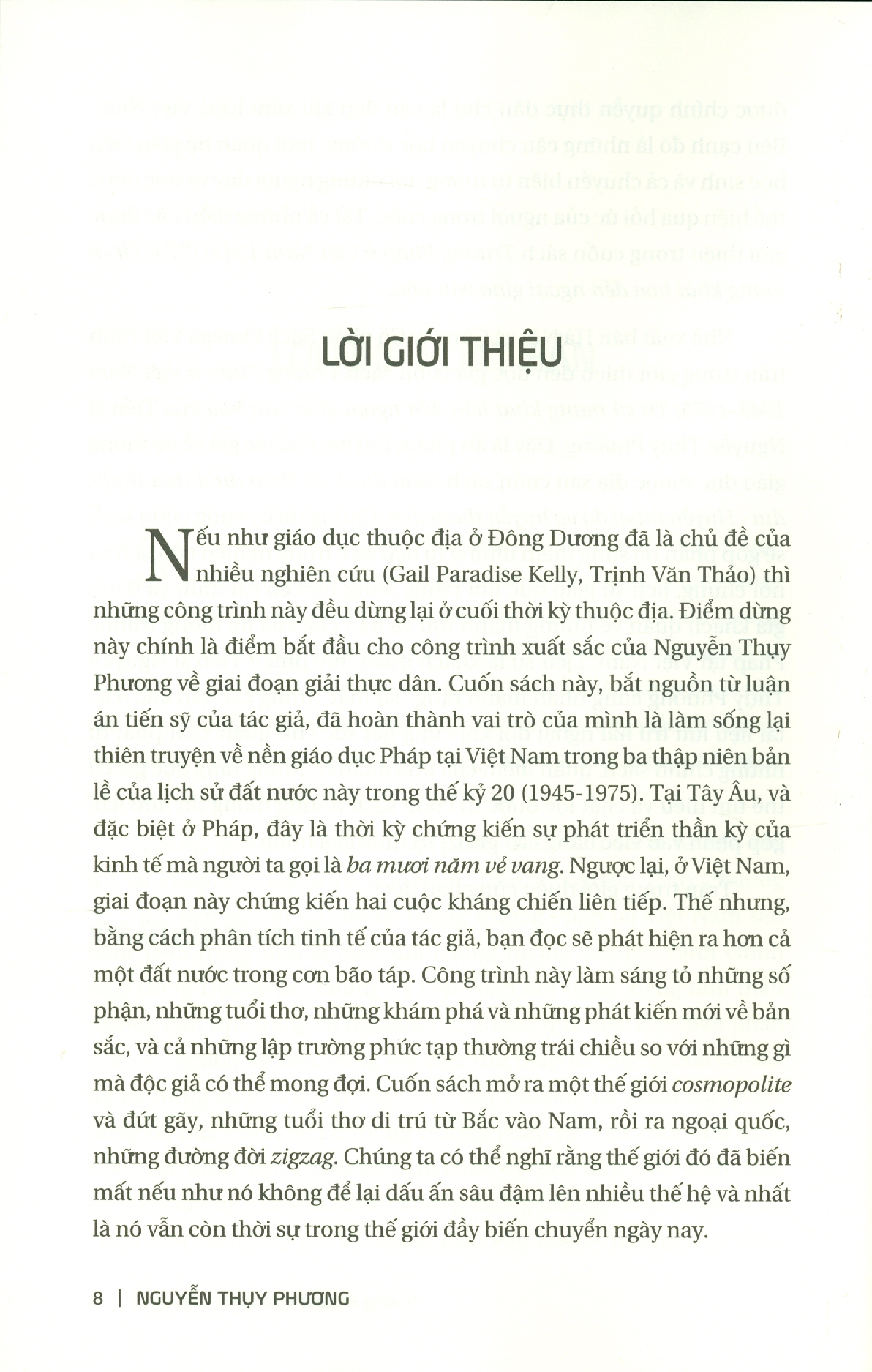 Cuốn sách này, bắt nguồn từ luận án tiến sỹ của tác giả, đã hoàn thành vai trò của mình là làm sống lại thiên truyện về nền giáo dục Pháp tại Việt Nam trong ba thập niên bản lề của lịch sử đất nước này trong thế kỷ 20 (1945-1975).