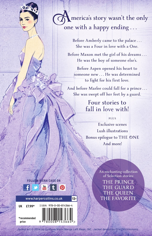 Meet Prince Maxon before he fell in love with America, and a girl named Amberly before she became queen. See the Selection through the eyes of a guard who watched his first love drift away and a girl who fell for a boy who wasn't the prince. Features four novellas from the world of Kiera Cass's Selection series, two of which appear here in print for the first time. Additional content includes new scenes from The Selection, The Elite, and The One; introductions to each novella from Kiera Cass; a map of Illéa and other illustrations.