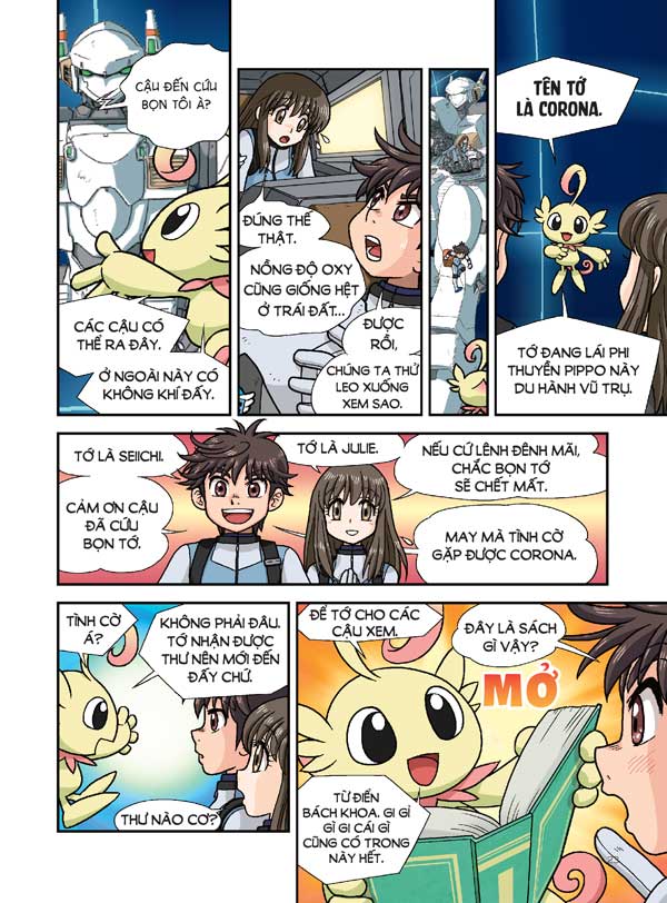 GIỚI THIỆU NỘI DUNG Bộ truyện tranh Nhiệm vụ khoa học kỳ bí gồm 10 cuốn, dẫn các bạn nhỏ vào thế giới khoa học qua các chuyến phiêu lưu với nhiều chủ đề khác nhau. Mỗi tập là một cuộc phiêu lưu của Corona - một sinh vật bí ẩn từ vũ trụ đến Trái Đất để khám phá. Nhờ có các thiết bị công nghệ cao của vũ trụ, cậu đã cùng các bạn nhỏ Trái Đất phiêu lưu tới các "thế giới" thông qua đó biết được nhiều kiến thức khoa học bổ ích và lý thú. Không liệt kê một cách nhàm chán, các kiến thức khoa học thuộc chủ đề chung của bộ sách được lồng ghép trong phần truyện tranh ly kì và gay cấn. Ngoài ra, rải rác khắp các trang và cuối mỗi chương sẽ có phần Ghi nhớ và Hồ sơ nhiệm vụ, giải thích cụ thể hơn về các kiến thức khoa học đã được đề cập trước đó. Qua đó trẻ sẽ tiếp thu các kiến thức khoa học một cách tự nhiên và hào hứng. Đặc biệt, mỗi cuốn sách thuộc mỗi chủ đề đều được hiệu đính bởi các cố vấn chuyên môn là các chuyên gia hàng đầu trong từng lĩnh vực, giúp trẻ có những kiến thức chuẩn xác nhất. Nhiệm vụ khoa học kỳ bí: Bay tới tận cùng vũ trụ! Có phải các bé muốn trở thành “phi hành gia nhí” được thỏa sức đi đến những hành tinh mới lạ trong vũ trụ bao la huyền bí? Vậy hãy theo chân Corona trong chuyến đi tới thiên hà này nhé! Hai thiếu niên Seiichi và Julie đang đi lạc, trôi dạt trong vũ trụ rộng lớn thì may mắn được Corona cứu. Khi biết Corona đang thực hiện chuyến du hành đặc biệt, Seiichi, Julie đã cùng người bạn mới hoàn thành nốt nhiệm vụ. Cả ba đã cùng nhau du hành tới nhiều nơi trong vũ trụ, từ Hệ Mặt Trời tới lỗ đên,… và khám phá biết bao bí ẩn trong vũ trụ bao la.