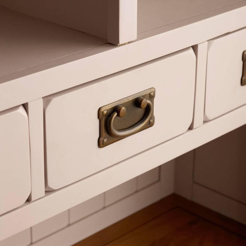Tủ chén cao Kemble gỗ sồi loại lớn là sản phẩm nổi bật trong bộ sưu tập Kemble hiện đại. Nó mang đến một cái nhìn mộc mạc và sang trọng cho không gian nội thất phòng ăn của gia đình. Tủ được làm từ chất liệu gồi sồi trắng Mỹ nhập khẩu với nền sơn trắng xám dịu nhẹ, toát lên vẻ đẹp thanh lịch và sang trọng cho nội thất của căn phòng. Thiết kế với 3 ngăn tủ rộng rãi và các ngăn kéo lớn nhỏ cực kì chắc chắn có thể đáp ứng một lượng lưu trữ của cả gia đình. Ngoài ra, các ngăn kệ bên trên sẽ là nơi hoàn hảo để trưng bày các vật dụng như chén bát, đồ gốm sứ... Mặt kệ giữa sẽ là nơi để sắp xếp và bày biện những món ăn ngon cho một bữa tiệc thịnh soạn.