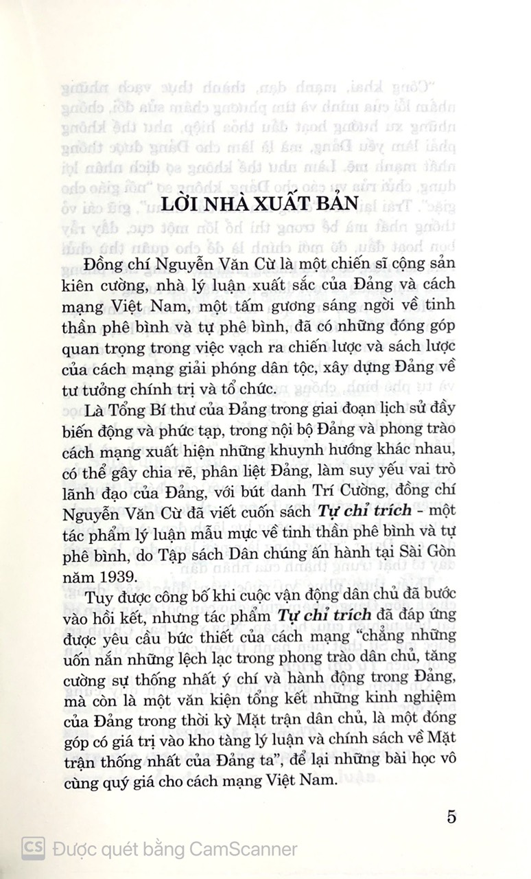 Thiết thực phục vụ Hội nghị Trung ương 4 khóa XI, nhằm giúp cho cán bộ, đảng viên có tài liệu nghiên cứu, học tập, Nhà xuất bản Chính trị quốc gia - Sự thật tiếp tục xuất bản cuốn sách Tự chỉ trích của nguyên Tổng Bí thư.