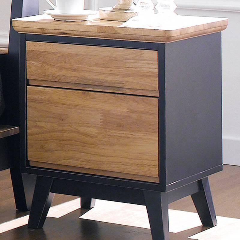 Tủ đầu giường 2 ngăn kéo NB-Blue làm từ chất liệu gỗ cao su thiên nhiên, có sẵn tại Việt Nam và rất được tin dùng tại các nước Châu Á như Nhật Bản, Hàn quốc…Thiết kế nhỏ gọn và thanh lịch, với phần nóc tủ dày dặn sẽ là nơi lý tưởng để đặt một chiếc đèn ngủ, giúp tô điểm không gian thêm đẹp mắt. Các chi tiết góc cạnh được trau chuốt tỉ mỉ và tinh tế, dáng chân thon gọn. Hai ngăn kéo tủ rộng rãi được chế tác thủ công, kết cấu ghép mộng cực kỳ chính xác, đáp ứng lượng lưu trữ tuyệt vời. Đây là một phần nội thất thuộc bộ sưu tập NB-Blue hiện đại, đặc trưng bởi màu sơn xanh navy nổi bật và màu nâu gỗ tự nhiên tại các mặt hộc ngăn kéo, phù hợp với nhiều phong cách khác nhau trong phòng ngủ, phòng khách...