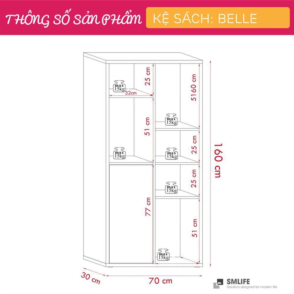 Mua tại TiktokKệ sách Belle được ví như một tác phẩm nghệ thuật với phong cách đơn giản sẽ giúp bạn xắp sếp những cuốn sách một cách sành điệu và độc đáo. Kệ sách Belle mang đến sự tinh tế, hiện đại cho phòng khách của bạn và đồng thời cung cấp một không gian lớn cho các vật dụng trang trí. Sản phẩm phù hợp cho mọi phong cách trang trí căn hộ và văn phòng làm việc. Sử dụng vật liệu ván ép công nghiệp MDF chống ẩm phủ Melamine cao cấp giúp kệ sách SMLIFE có độ bền cao, chống trầy và chống ẩm rất tốt. Bạn có thể tự lắp đặt sản phẩm dễ dàng với các phụ kiện và hướng dẫn đi kèm.