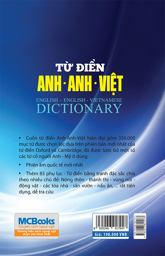 Mua tại TiktokCuốn “‘Từ điển Anh – Anh – Việt” này là cuốn cẩm nang không thể thiếu giúp bạn học tiếng Anh bài bản. Ưu điểm nổi bật của cuốn sách: - Gồm 350.000 mục lục