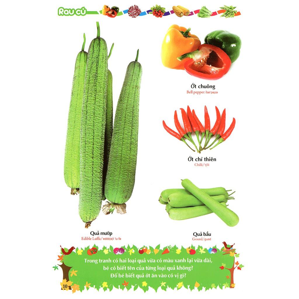 Cuốn sách với nhiều hình ảnh sinh động về các loại rau củ quả khác nhau giúp bé phát triển khả năng nhận biết. Cuốn sách còn là bộ sưu tập với nhiều hình ảnh gần gũi quen thuộc giúp bé trở nên thích thú.