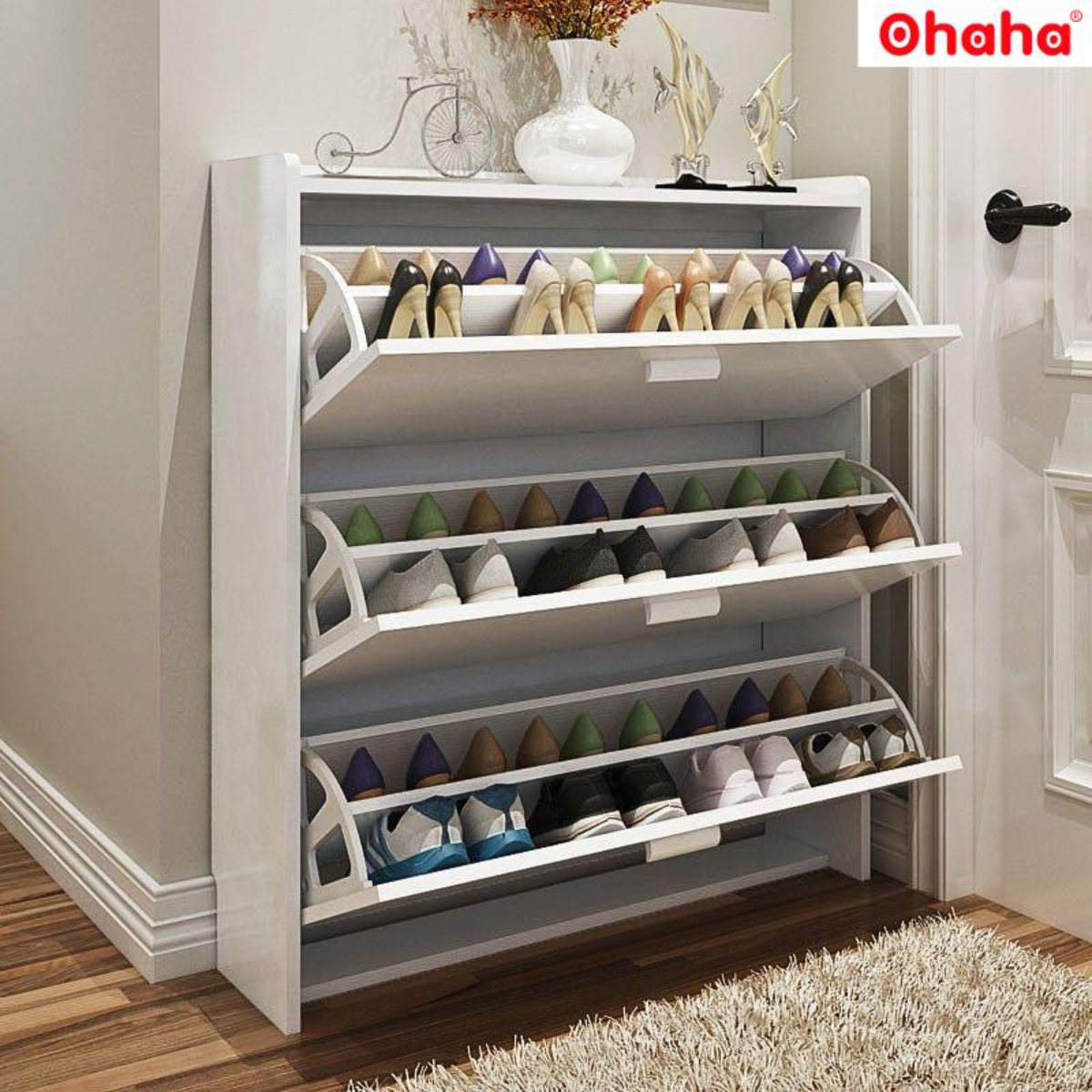 *Sản phẩm chỉ bao gồm 1 tủ không kèm các phụ kiện khác. Tủ giày thông minh cao cấp - nâng tầm không gian sống của bạn Tủ giày thông minh đang tạo nên một cơn sốt trong ngành nội thất và dần thay thế các kệ để giày truyền thống. Thiết kế hiện đại của tủ giày thông minh giúp tiết kiệm diện tích tối đa và khiến không gian sống của chúng trở nên độc đáo hơn. Sản phẩm không chỉ làm bật lên vẻ sang trọng cho căn hộ mà còn giúp ngôi nhà trở nên hiện đại và tinh tế hơn. Tủ Giày Thông Minh Tiện Dụng OHAHA - TG001 Tủ giày được thiết kế thông minh với kích cỡ vừa phải, có thể đặt khắp nơi trong nhà, trong văn phòng công ty.  Thiết kế tủ tinh tế như vật dụng trang trí với màu sắc nổi bật tô điểm không gian nội thất của bạn trở nên phong phú, đa dạng hơn.  Sản phẩm được thiết kế trau chuốt, tỉ mỉ từng góc cạnh – Giúp an toàn cho trẻ nhỏ. Kiểu dáng sang trọng, đẹp mắt, trang nhã mà hiện đại đầy cảm hứng nghệ thuật. Tủ giày gỗ MDF chất liệu thân thiện với môi trường  Tủ giày thông minh làm từ gỗ MDF lõi xanh bề mặt Melamine chống ẩm, chống xước và chống xước một cách hiệu quả. Sản phẩm không chỉ đẹp về mỹ quan mà còn mang lại độ bền chắc lâu dài. Sản phẩm đã qua xử lý chống cong vênh, mọt bằng công nghệ của Đức, thân thiện với môi trường và an toàn cho sức khỏe mọi người. Tủ giày thông minh cao cấp với kết cấu chắc chắn, an toàn