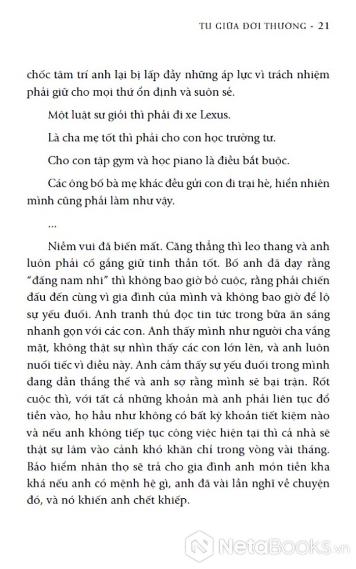 - Minh triết phương Đông trong đời sống hiện đại - Thế giới hiện đại, đặc biệt là n.hịp s.ống hối hả của môi trường đô thị khiến con người ngày càng mất kết nối với tự nhiên, rời xa bản chất đích thực để chạy theo các khuôn mẫu bên ngoài. Khủng hoảng của con người đô thị hiện đại diễn ra ở hầu hết các khía cạnh đời sống, khiến chúng ta kiệt sức, thiếu thời gian, rơi vào lối sống trì trệ, chán ghét bản thân và không tìm thấy ý nghĩa sống. Pedram Shojai – một tu sĩ Đạo giáo và môn sinh Phật giáo, đã xác định gốc rễ các khủng hoảng của con người đô thị đều bắt nguồn từ lối sống không lành mạnh và tình trạng căng thẳng không thể kiểm soát. Trong cuốn sách “Tu giữa đời thường” (tựa gốc: “The Urban Monk”), ông đã lên một chương trình cải thiện lối sống toàn diện thông qua minh triết và các phương pháp thực hành phương Đông, từ thiền định, khí công đến các ứng dụng Đông y. Thấu hiểu n.h.ị.p s.ố bận rộn của con người thời hiện đại, Pedram Shojai không đòi hỏi bạn đọc phải tham dự các khóa tu thiền, xuất gia hay theo đuổi một lối tu hành khổ hạnh, mà cung cấp giải pháp cho những vấn đề thiết thực đang diễn ra hằng ngày. Tác giả đã đề ra chương trình cải thiện lối sống giúp bạn sống chậm lại, có thêm năng lượng và tập trung vào những điều thực sự quan trọng. Nằm trong danh sách “Những cuốn sách bán chạy nhất” của tờ New York Times, “Tu giữa đời thường” giúp người đọc khai mở nhận thức và sức mạnh vốn có của bản thân, tìm thấy bản chất chân thật của mình thông qua các bài tập thực hành, giúp người đọc biết cách lèo lái để vượt qua những giai đoạn gập ghềnh trong đời. Những đúc kết đầy minh triết từ kho tàng trí tuệ phương Đông và các bài tập thực hành vô giá của ông nhằm giúp mỗi người tìm được sự bình an và trật tự ngay trong thế giới mà họ đang sống. Cuốn sách gồm mười chương, mỗi chương đề cập đến một vấn đề chính yếu của cuộc sống mà hầu hết chúng ta gặp phải trong thế giới hiện đại, như: áp lực, sự eo hẹp về thời gian, thiếu năng lượng, các vấn đề về giấc ngủ, lối sống trì trệ, chế độ ăn uống kém lành mạnh, mất kết nối với tự nhiên, cô đơn, các vấn đề tiền bạc, thiếu ý nghĩa và mục đích sống. Mở đầu mỗi chương là câu chuyện của một bệnh nhân đại diện cho một “chứng bệnh thành thị” điển hình mà người đó gặp phải. Đó có thể là nỗi sợ thiên nhiên của chàng trai thành thị Ethen, cuộc sống ngập tràn căng thẳng của anh chàng luật sư Robert, tình cảnh “túng thiếu thời gian” của bà mẹ hai con Ashley, hay lối sống trì trệ bám lấy cô nhân viên văn phòng Stacy… Những trường hợp này được tác giả chọn lọc cẩn thận trong hàng nghìn buổi gặp gỡ giữa ông với các bệnh nhân suốt nhiều năm qua, với kiến thức chuyên môn của một bác sĩ và sự thông tuệ của một tu sĩ. Mỗi một chương, tác giả đều nêu “Vấn đề”, giúp người đọc nhận diện bản chất của tình huống và phân tích nó theo những góc nhìn mới mẻ. Để giúp người đọc thấy được lối ra của vấn đề, tác giả đã đúc kết từ triết lý bí truyền của các nền văn hóa phương Đông, cung cấp cho độc giả một cách nhìn khác về các vấn đề của bản thân trong phần “Minh triết dành cho người tu tại thị”. Pedram Shojai cũng giới thiệu “Các phương pháp thực hành phương Đông”, đúc kết từ kho tàng trí tuệ cổ xưa và những truyền thống lâu đời – những phương pháp thực hành đã được chứng nghiệm là đơn giản, tao nhã và có hiệu quả đối với con người hàng ngàn năm qua. Phần “Các chiêu thức tu tập thời hiện đại” sẽ gồm các bài tập thực hành, các ứng dụng và kỹ thuật hiệu nghiệm cho những vấn đề đặc trưng của thời đại mà chúng ta đang phải đối mặt. Cuối cùng, mỗi chương được khép lại bằng “Kế hoạch hành động”, với giải pháp cụ thể. Theo tác giả các bài luyện tập trong sách là phương pháp thực hành chuyên sâu, nó có thể đưa ra một kế hoạch hành động, lịch trình và một khung tham chiếu giúp bạn thành công. Tự nhận mình là một tu sĩ sống giữa chốn thị thành, một người “tu giữa đời thường”, Pedram Shojai xem cuộc sống như một dòng chảy tuyệt vời của những trải nghiệm, những bài học, những cuộc phiêu lưu và cơ hội để lan toả lòng tốt đến bất cứ nơi nào mà ta hiện diện. Tác giả hy vọng, thông qua cuốn sách “Tu giữa đời thường”, bạn đọc sẽ học được cách thoát khỏi những khủng hoảng của con người chốn thành thị để tìm thấy chính mình và sống một cuộc đời trọn vẹn. Người nổi tiếng nói gì về tác phẩm