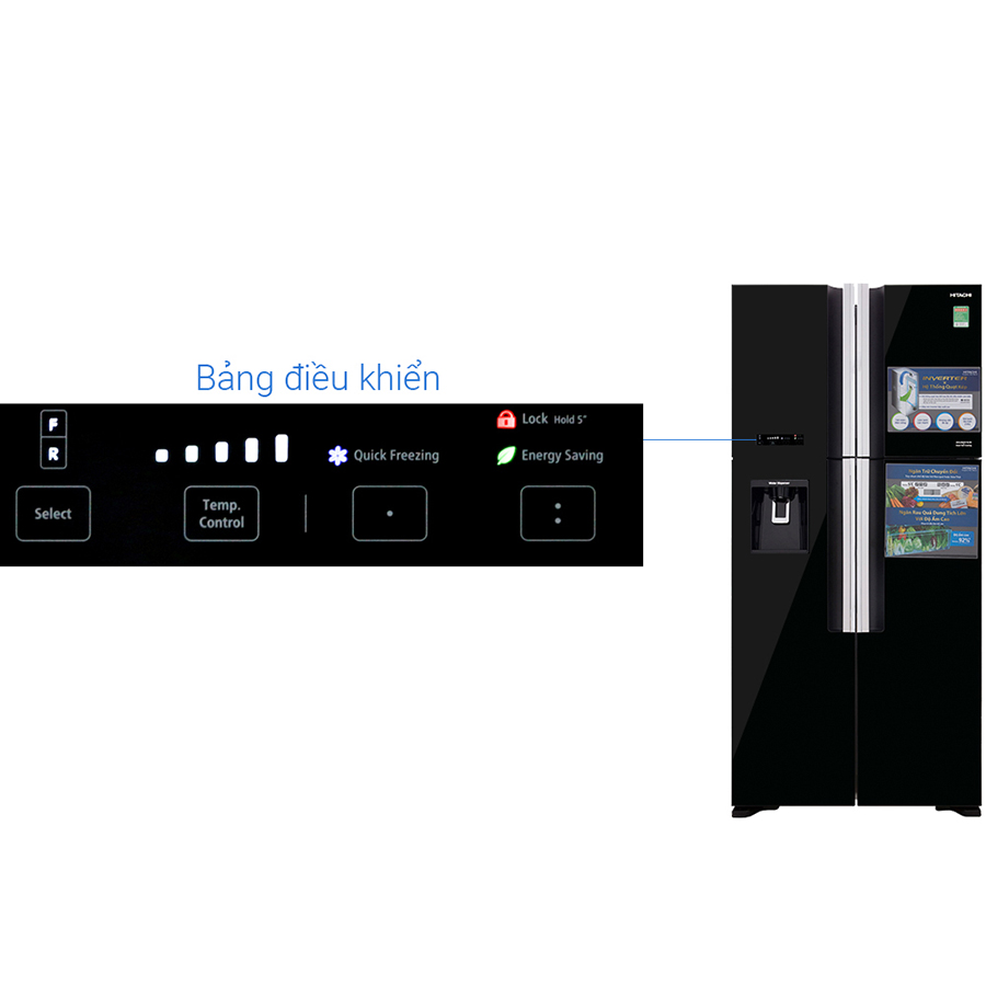 R-FW690PGV7 GBK Tủ lạnh Hitachi 4 cánh màu đen, 540 lít, mặt gương hàng Thái Siêu Sịn