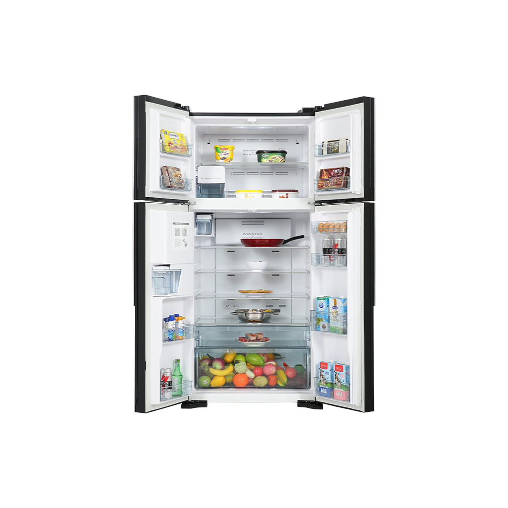 Tổng quan thiết kế - Hitachi Inverter 540 lít R-FW690PGV7X GBK là tủ lạnh Multi Door 4 cánh phong cách Pháp sang trọng, cửa tủ mặt kính sáng bóng gam màu đen hiện đại, dễ dàng lau chùi