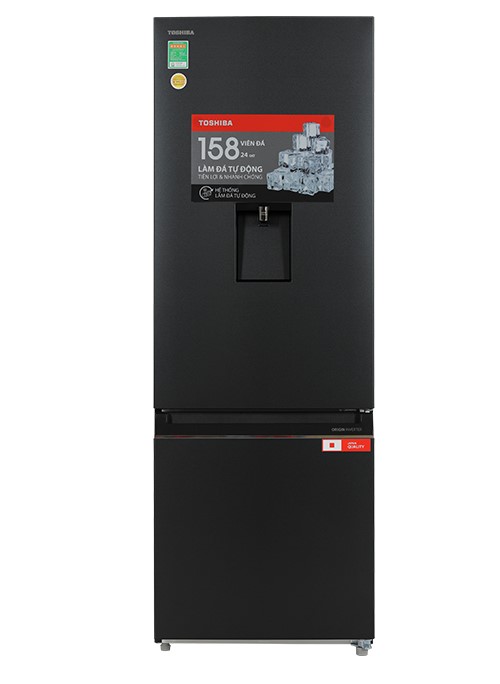 - ĐƯỢC KHUI THÙNG KIỂM TRA sản phẩm trước khi thanh toán/ký nhận Tổng quan thiết kế - Kiểu dáng tủ lạnh ngăn đá dưới gọn gàng, tinh xảo trong từng chi tiết, bề mặt tủ thiết kế Morandi 10 lớp cao cấp xếp chồng lên nhau không những góp phần làm tăng tính thẩm mỹ của thiết bị còn giúp hạn chế trầy xước, chống rỉ sét, chống bám bụi và dấu vân tay. - Dung tích sử dụng 321 lít là lựa chọn thích hợp cho gia đình có từ 3 - 4 người tích trữ thực phẩm hằng ngày hoặc gia đình có ít người hơn cần bảo quản lượng lớn thực phẩm phục vụ cho mục đích kinh doanh. Hình ảnh chỉ mang tính chất minh họa Ngăn đá - Mẫu tủ lạnh Toshiba này thiết kế ngăn đá với dung tích 90 lít, cung cấp không gian cất giữ thực phẩm đủ rộng để bạn bảo quản đồ đông lạnh thuận tiện. Ngăn lạnh - Dung tích 231 lít, bên trong thân tủ và ở cánh cửa tủ chia làm nhiều kệ, 1 ngăn đựng rau củ quả và ngăn đông mềm Flex-zone cho bạn sắp xếp thực phẩm và đồ dùng ngăn nắp theo thói quen của gia đình mình. - Khay kệ thiết kế linh hoạt cho người dùng dễ dàng thay đổi theo nhu cầu, khay chứa ở cạnh cửa được làm với độ cao lý tưởng giúp giữ chai lọ của bạn vững vàng, tránh rơi vỡ. Hình ảnh chỉ mang tính chất minh họa Công nghệ tiết kiệm điện - Tích hợp công nghệ Origin Inverter gồm có máy nén Inverter cùng hệ thống quạt Inverter cho tủ lạnh vận hành mượt mà, êm ái, ổn định và tiết kiệm điện năng trong suốt thời gian sử dụng thiết bị. - Tem năng lượng 5 sao. Công suất tiêu thụ công bố theo TCVN ~ 0.87 kW/ngày. Hình ảnh chỉ mang tính chất minh họa Công nghệ làm lạnh + Công nghệ bảo quản thực phẩm - Luồng khí lạnh đa chiều Multi Air Flow: đưa khí lạnh từ các cửa thoát hơi lạnh tỏa đều đến mọi góc trong tủ, giữ cho nhiệt độ tủ đồng đều, duy trì thực phẩm tươi ngon hiệu quả. - Ngăn cấp đông mềm Flexible Zone -1 độ C: bảo quản được thịt, cá trong 3 đến 4 ngày mà không cần rã đông, chế biến tiện lợi trong khi vẫn giúp giữ được nguyên hương vị. Ngăn chứa này còn giúp làm lạnh thức uống nhanh chóng, thiết kế có thể đổi vị trí tùy thích. Hình ảnh chỉ mang tính chất minh họa Công nghệ kháng khuẩn khử mùi Công nghệ PureBio với bộ lọc bằng Ceramic nhúng tinh thể Bạc Ag+ giúp loại bỏ mùi hôi, tiêu diệt vi khuẩn với hiệu quả lên tới 99.99% giúp đảm bảo an toàn vệ sinh thực phẩm và không gian trong tủ sạch sẽ hơn. Tiện ích - Bảng điều khiển điện tử: được thiết kế ở phía trên cho việc điều chỉnh 4 chế độ nhiệt chuẩn xác và ổn định. Thêm nữa, bảng điều khiển sẽ khóa tự động sau 15 phút giúp giữ an toàn cho gia đình có trẻ em. - Làm đá tự động: giúp làm đá lạnh nhanh với tốc độ đến 1.2 kg đá mỗi ngày tương đương với 158 viên, cho bạn có đủ lượng đá viên dùng trong ngày, mở tiệc nhỏ trong nhà tiện lợi. - Lấy nước ngoài tiện lợi: với hộp nước 2 lít làm từ vật liệu không chứa BPA an toàn cho sức khỏe, thiết kế vòi ở bên ngoài cho bạn lấy nước thoải mái mà không cần mở tủ ra. *Hình ảnh chỉ mang tính chất minh họa