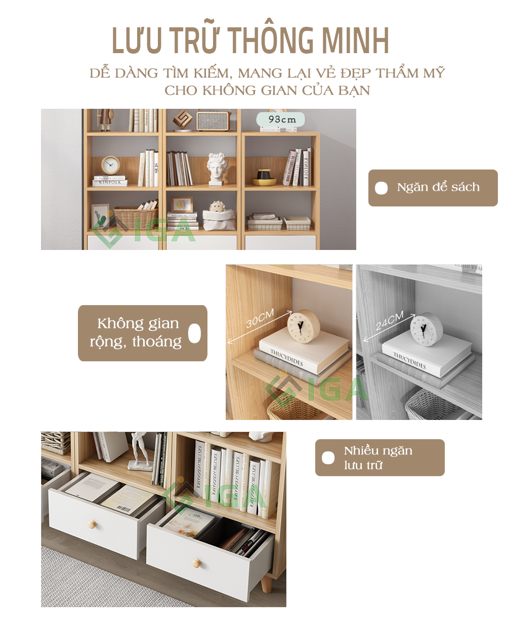 - Tên sản phẩm: Kệ sách 8 hộc đựng đồ lớn gỗ mdf dày 25mm cao cấp decor phong cách minimalism thương hiệu IGA - Chất liệu: Gỗ mdf dày 25mm phủ melamin chống xước