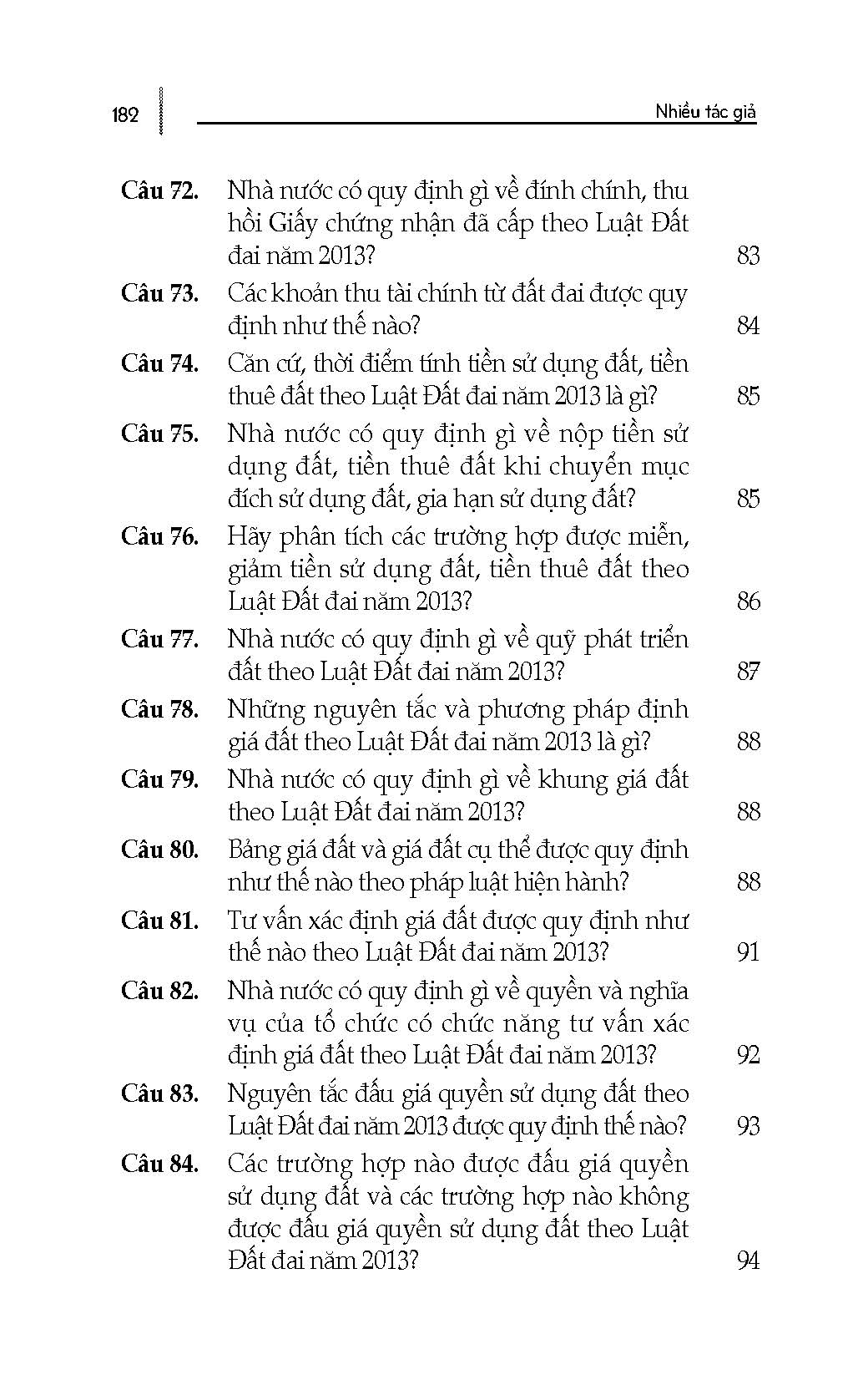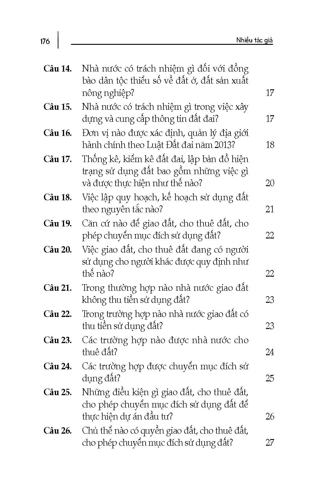Nhu cầu tìm hiểu các vấn đề pháp lý về đất đai, nhà ở là nhu cầu chung của mọi người dân trong xã hội. Với phương châm để bạn đọc có thể tiếp cận các kiến thức pháp luật một cách đơn giản, dễ hiểu nhất, nội dung cuốn sách được biên soạn dưới dạng hỏi - đáp về các vấn đề pháp lý liên quan đến đất đai và nhà ở. Các câu hỏi đáp pháp luật được biên soạn rõ ràng, dễ hiểu và là những vấn đề thường nhận được sự quan tâm của nhiều chủ thể khác nhau trong xã hội.