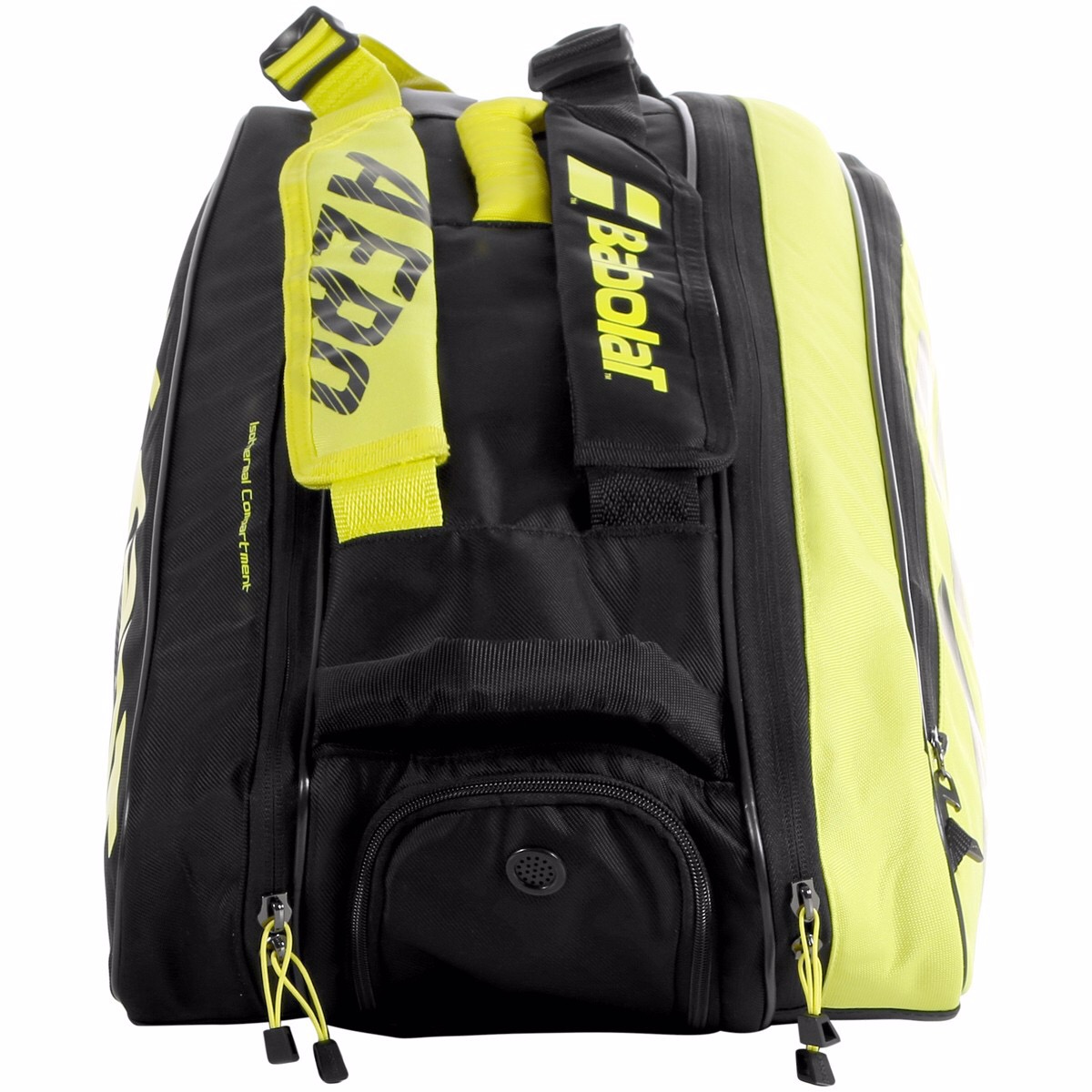 Túi BABOLAT PURE AERO 2021 , thiết kế mới với 1 mặt đen chữ vàng và một mặt vàng chữa đen, ngầu và nổi bật, theo tông dòng vợt Pure Aero mới nhất. Mẫu x6 pack