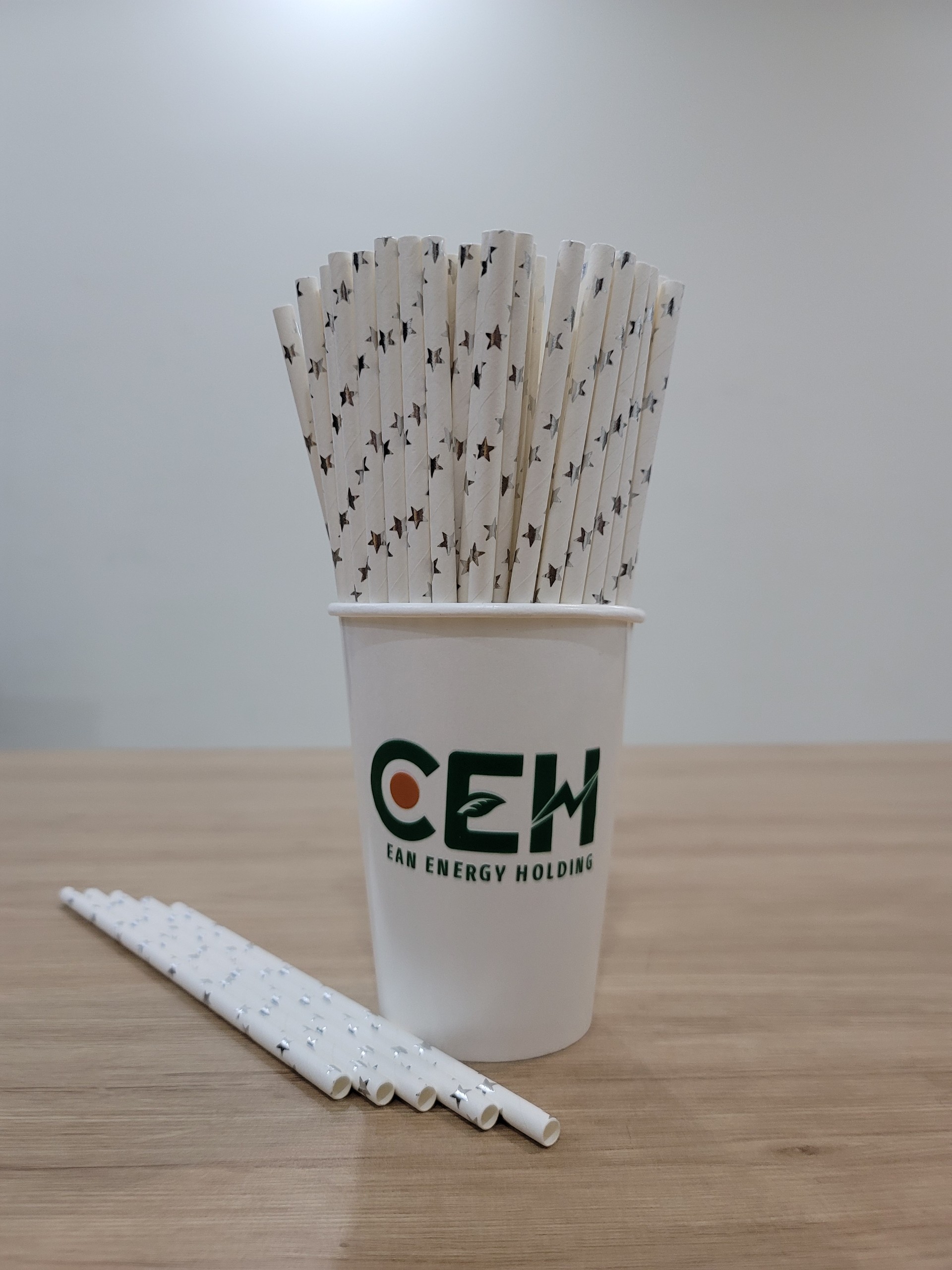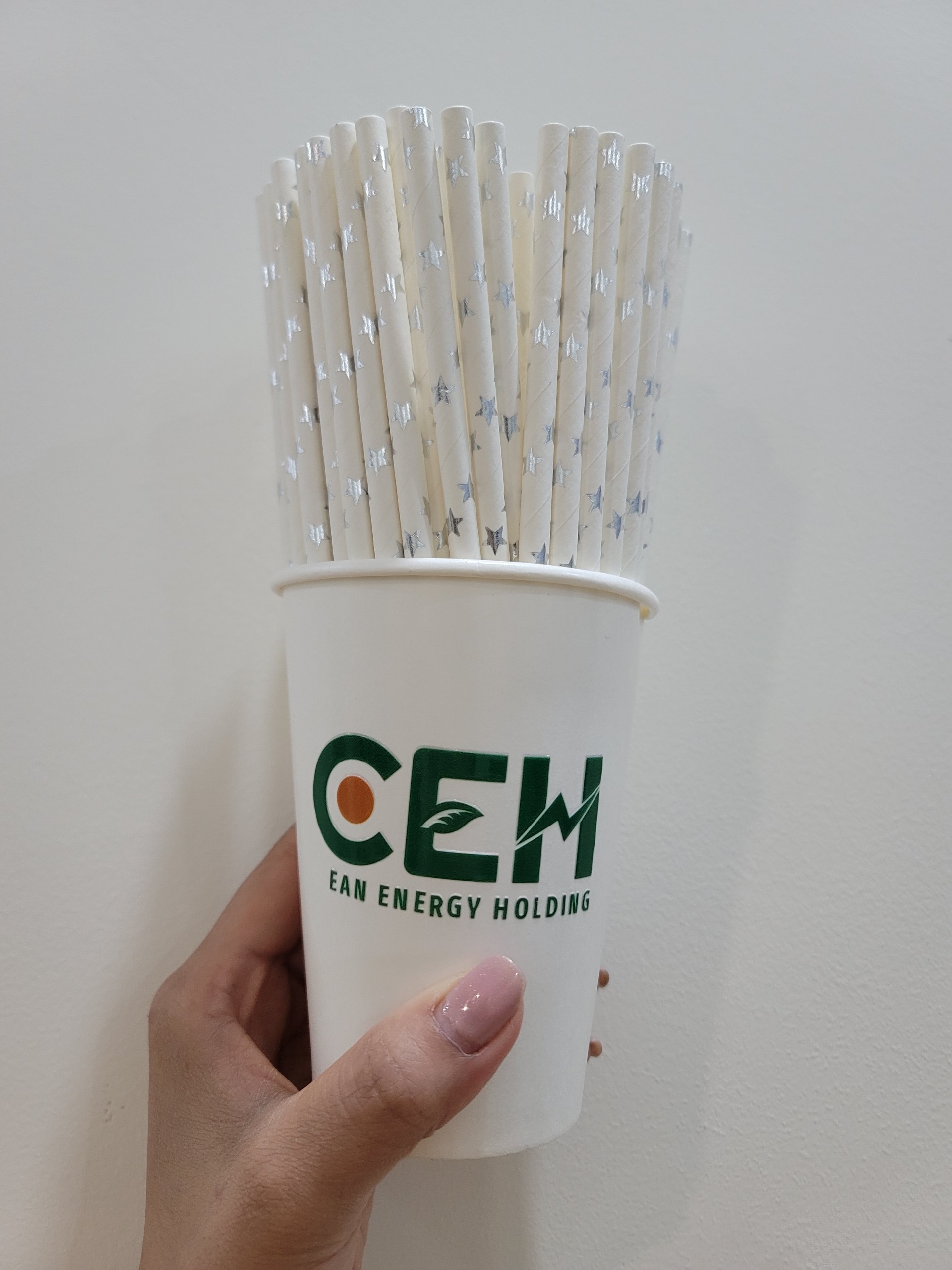 Sản phẩm của công ty Clean Energy Holding Ống hút giấy thân thiện với môi trường, kích thước 12mm x 197mm, phù hợp sử dụng cho các loại đồ uống như trà sữa, sinh tố,