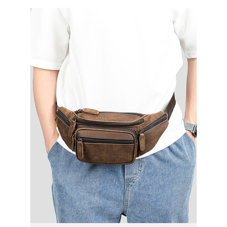 Túi Bao Tử, Túi Đeo Bụng Da Bò Marrant - BHM8879 với thiết kế nhiều ngăn khóa kéo: 3 ngăn kéo trước, 1 ngăn chính, 2 ngăn nhỏ bên sườn, 1 ngăn khóa kéo nhỏ phía sau túi giúp bạn thoải mái để phụ kiện cá nhân.