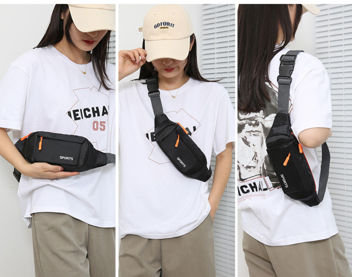 Túi Bao Tử Đeo Ngực Nhỏ Mini Trơn Màu Đen Giản Dị Dành Cho Nam Nữ Chất Liệu Nylon Chống Nước