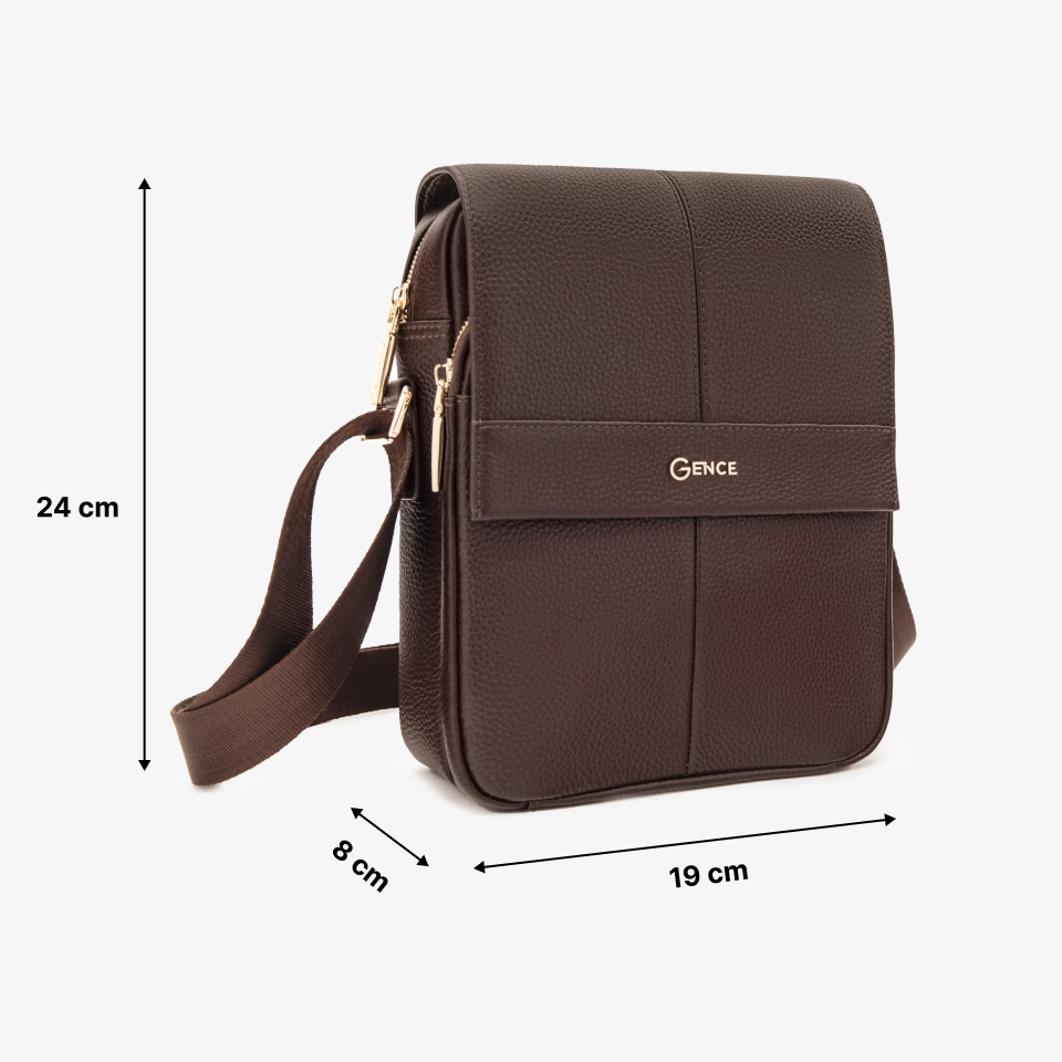 ✨Túi Đeo Chéo Nam Hàng Hiệu GENCE TD09 Da Bò Mềm Cao Cấp Màu Nâu Đậm Dáng Dọc