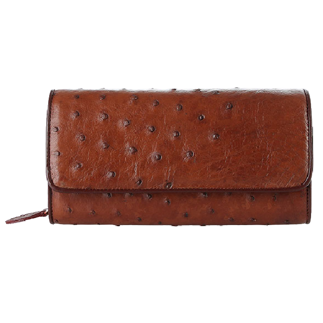 Bóp/Ví da đà điểu Huy Hoàng da bụng kiểu đứng màu nâu đất, nâu đỏ, đen, vàng bò 2408-09-10-18