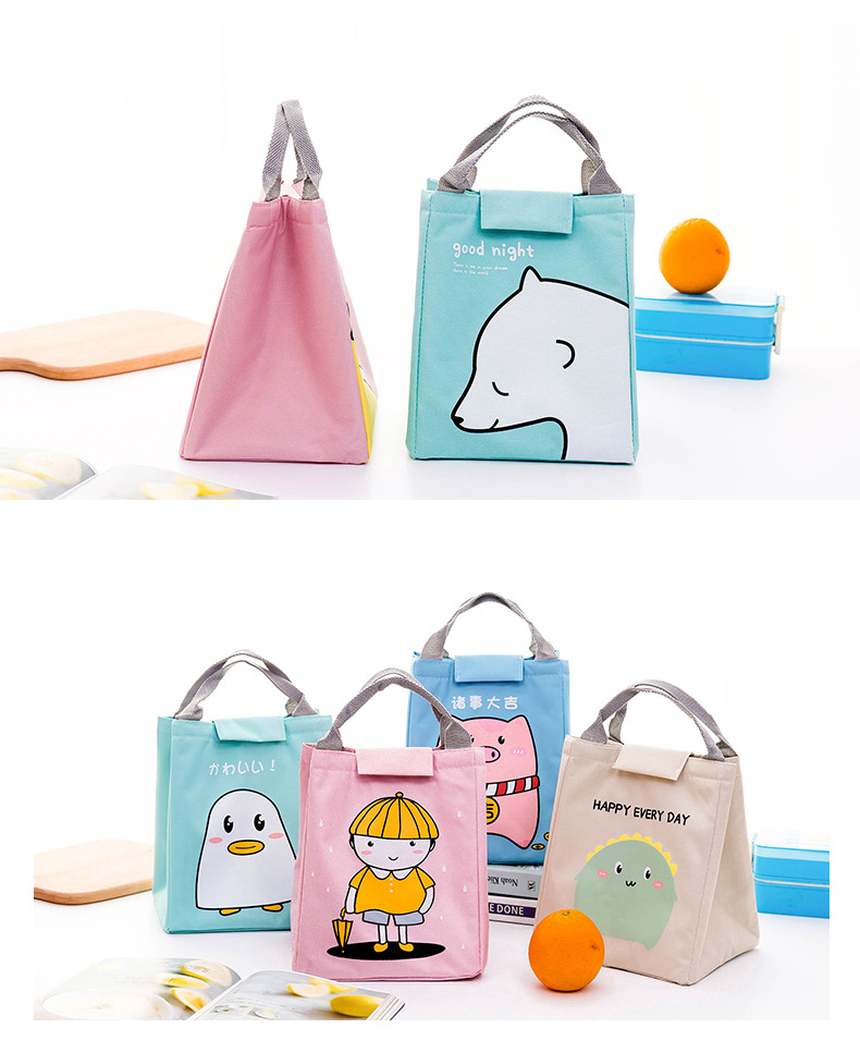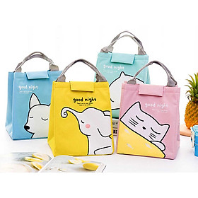 Túi giữ nhiệt cầm tay vải Canvas Dễ Thương lót bạc dày, Túi đựng hộp cơm, đồ ăn, bình nước, tú