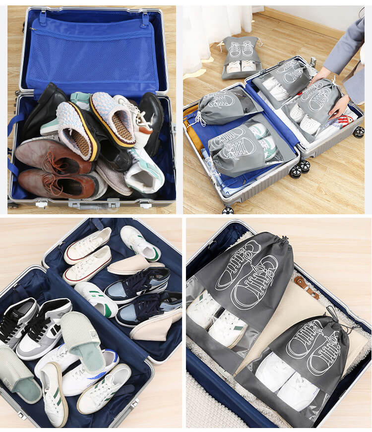 Túi đựng giày dép là giải pháp hoàn hảo giúp bạn có thể sắp xếp gọn gàng và bảo quản tốt cho những đôi giày khi đi xa. Sản phẩm bằng vải không dệt thoáng