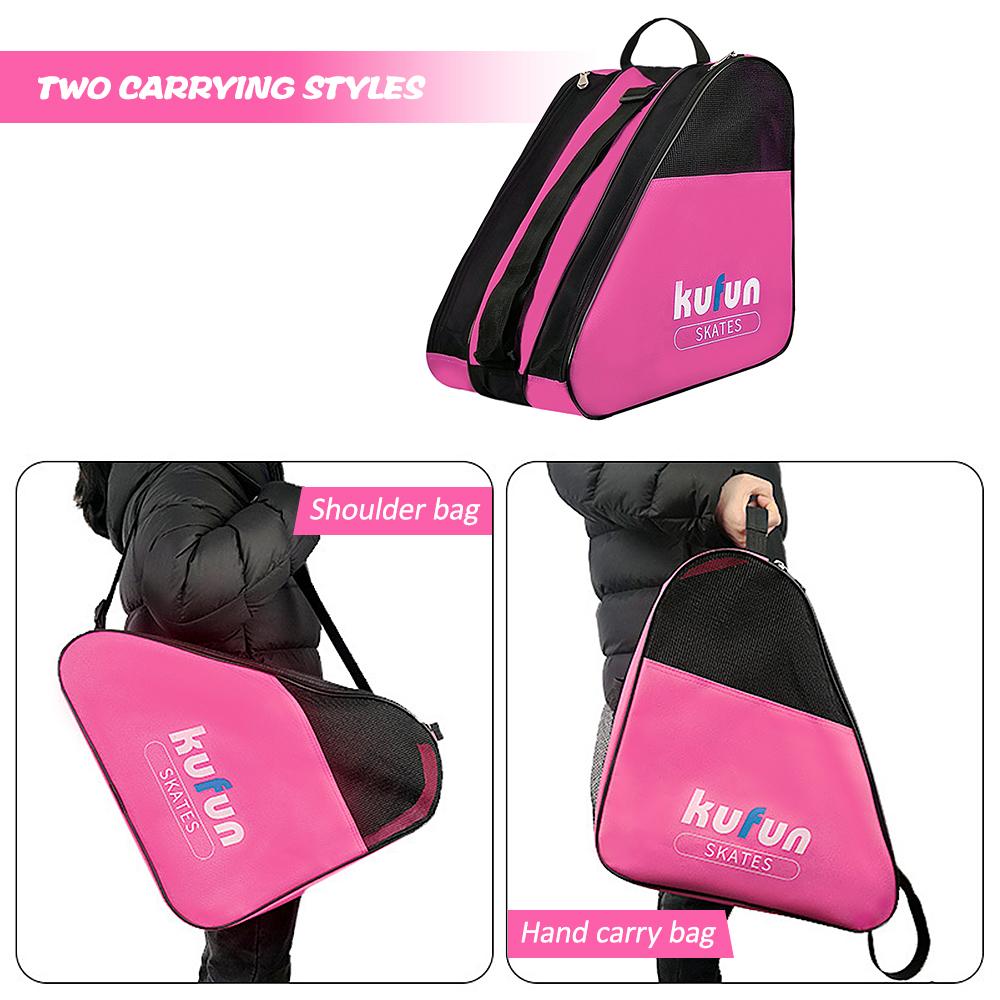 The skate carry bag includes three compartments to provide large capacity for storing your skates, and skating accessories. Features: Tear-resistant oxford cloth with reinforced seams for durability. Three compartments provide large storage space and keep