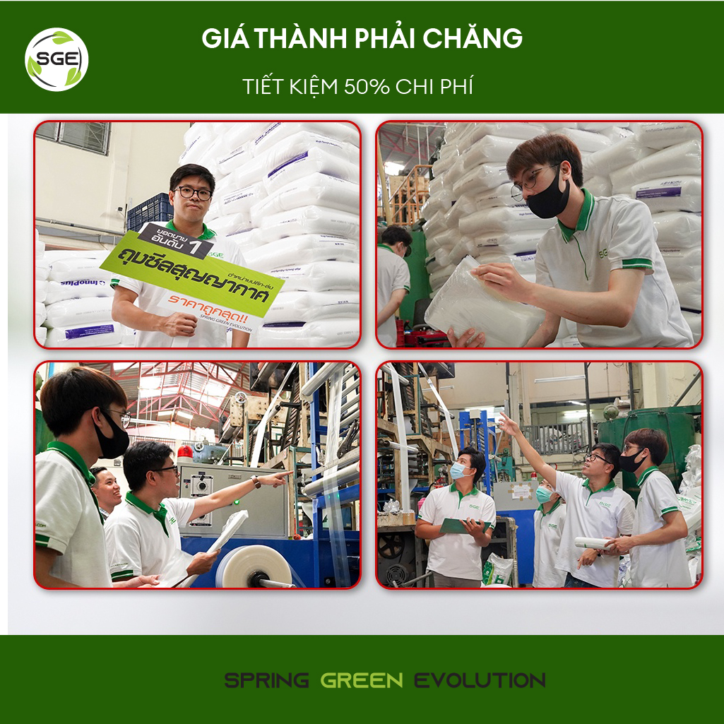Sản xuất từ nhựa Polyethylene (PE) và nhựa Polyester (PET) chất lượng cao, đạt tiêu chuẩn an toàn vệ sinh thực phẩm