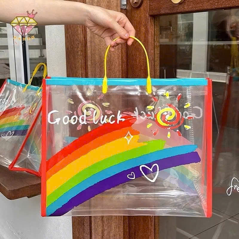Túi Tote Nhựa PVC Trong Suốt Họa Tiết Cầu Vồng - Thời Trang Hiện Đại Mang đến sự kết hợp hoàn hảo giữa phong cách và sự tiện lợi, Túi Tote Nhựa PVC Trong Suốt