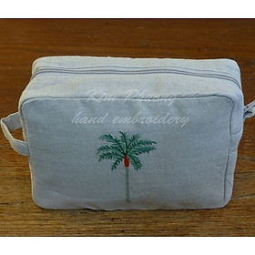 Sản phẩm Túi mỹ phẩm Mẫu CỌ CỔ ĐỎ Vải linen Màu vải xám Kích thước chung rộng 16 x dài 23 x cao 7cm Hình dạng chữ nhật, có lót bên trong, dây kéo