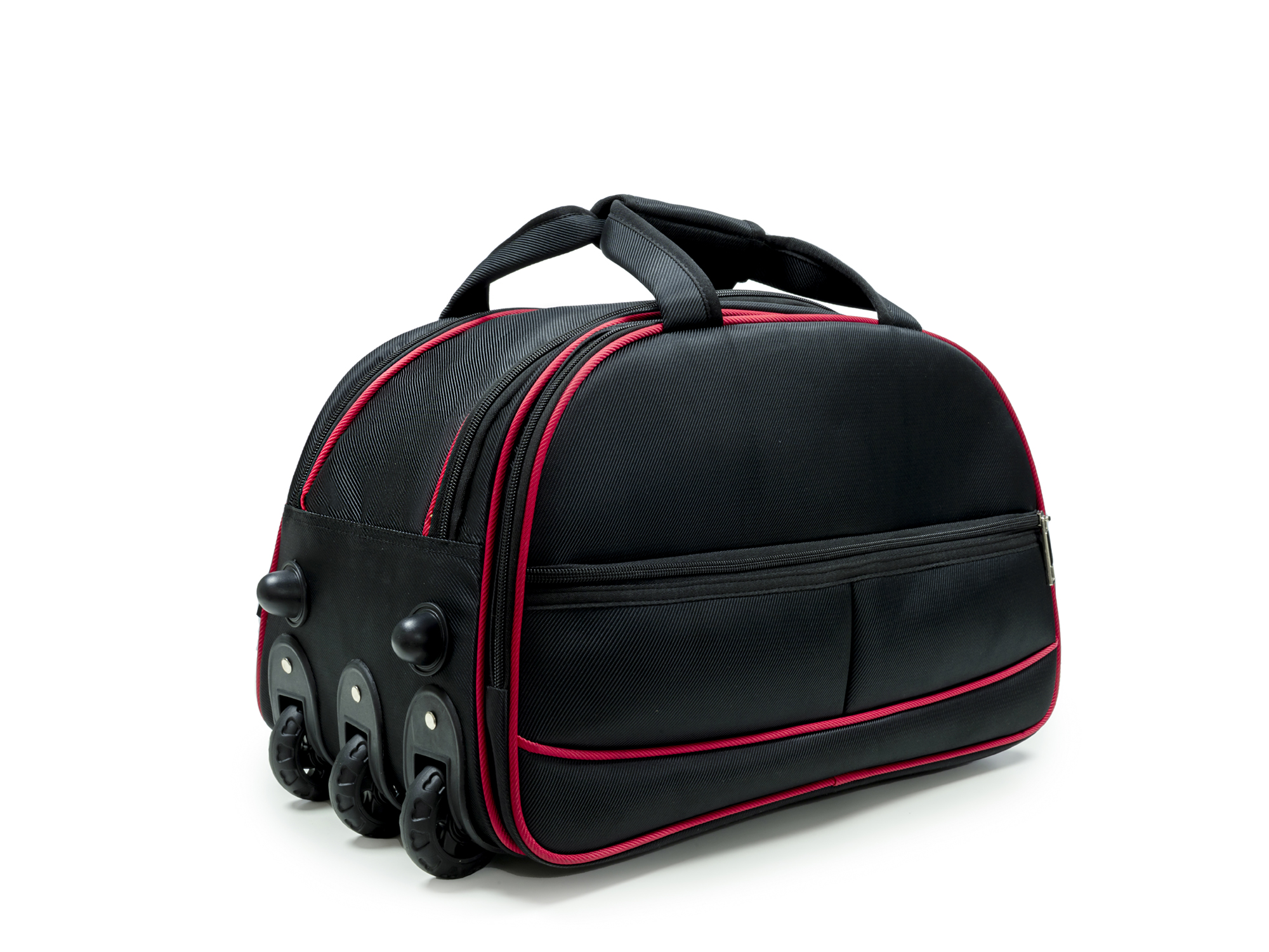 Vali Kéo Du Lịch  đen Phối  đỏ Có Nắp - 22 Inch được thiết kế từ chất liệu vải Polyester có độ bền cao, chống thấm nước tối ưu giúp bảo vệ hành lý bên