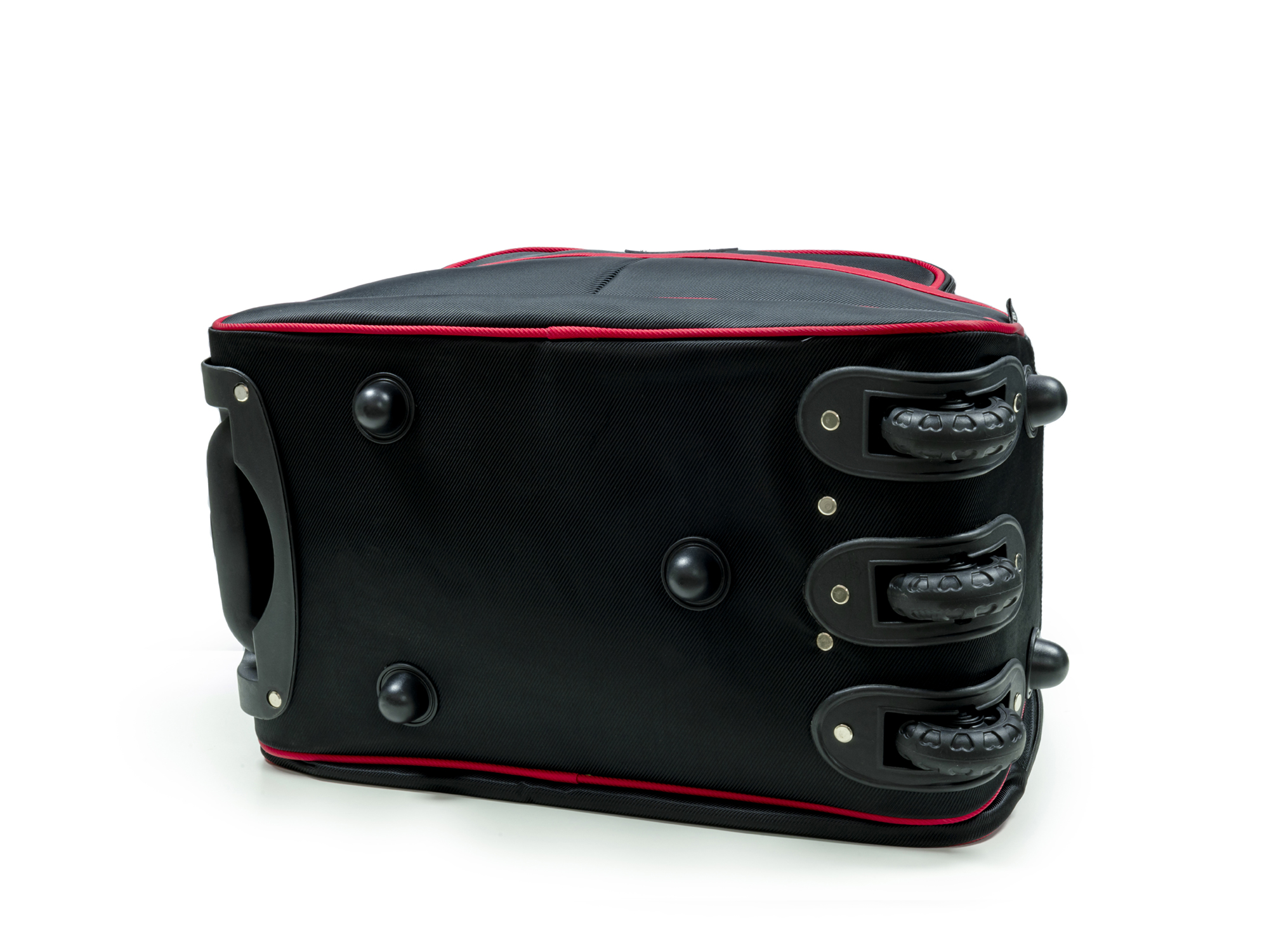 Vali Kéo Du Lịch  đen Phối  đỏ Có Nắp - 22 Inch được thiết kế từ chất liệu vải Polyester có độ bền cao, chống thấm nước tối ưu giúp bảo vệ hành lý bên