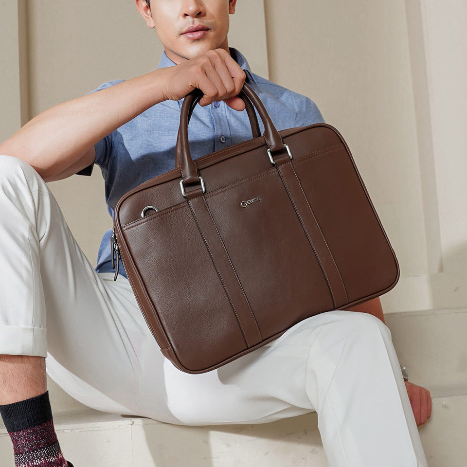 Túi xách nam công sở Gence da bò Swift màu nâu GCE17
