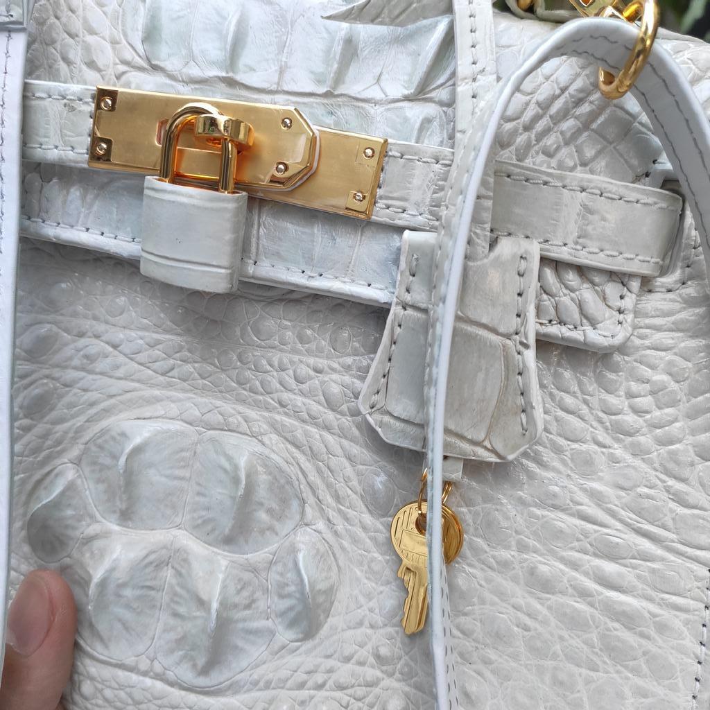 Túi xách da cá sấu bạch tạng màu trắng hymalia #tuidacasaubachtang #tudacasau