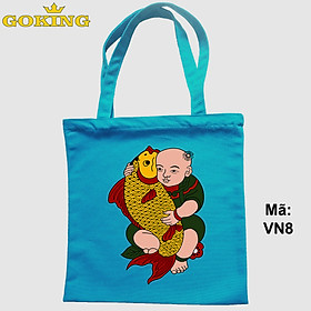 ✨Túi xách tranh Đông Hồ Việt Nam, Em bé ôm cá, mã VN8. Quà tặng cao cấp cho gia đình, nam nữ cặp đôi, hội nhóm, doanh nghiệp