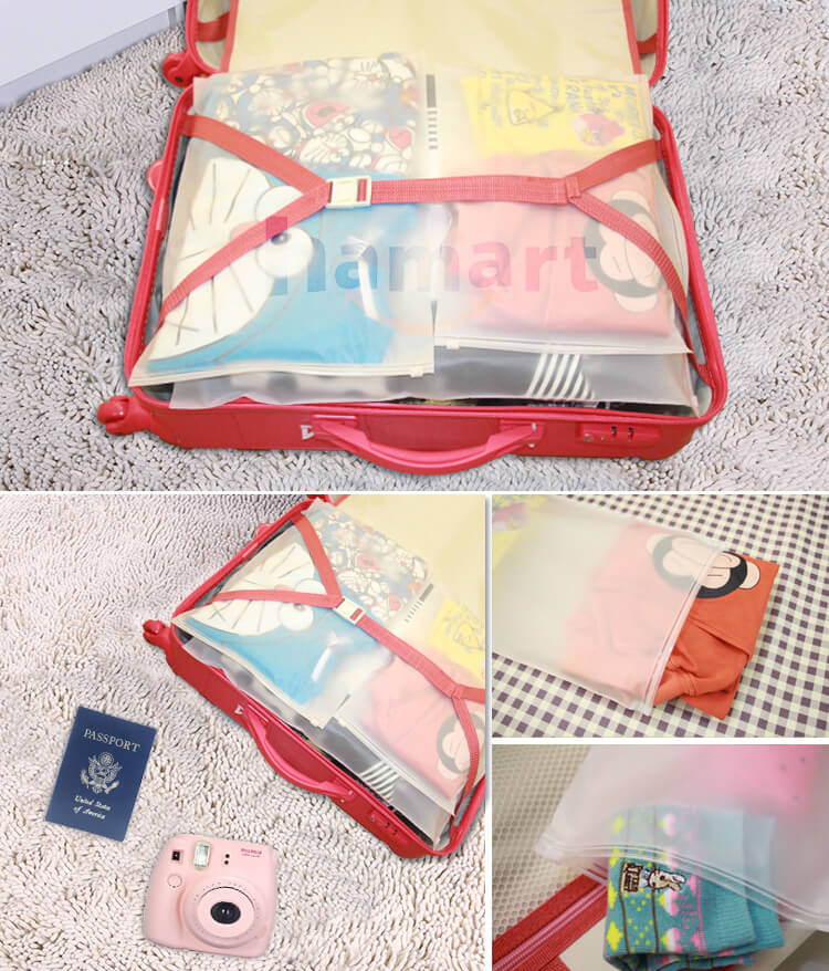• Túi ziplock đựng chất liệu lụa mờ có khóa zip giúp bạn sắp xếp quần áo, vật dụng cá nhân khi đi du lịch, công tác 1 cách gọn gàng.