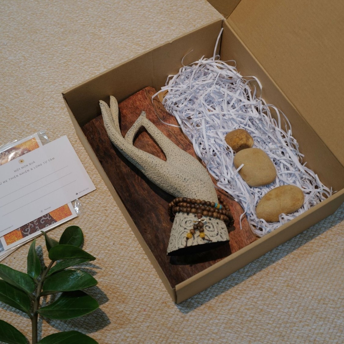 ✨Tượng bàn tay "Vô Uý" kèm đế gỗ - bộ đá Zen tặng kèm chuỗi hạt - chất liệu bột đá - Bazango - Trang trí nhà - Trang trí nhà