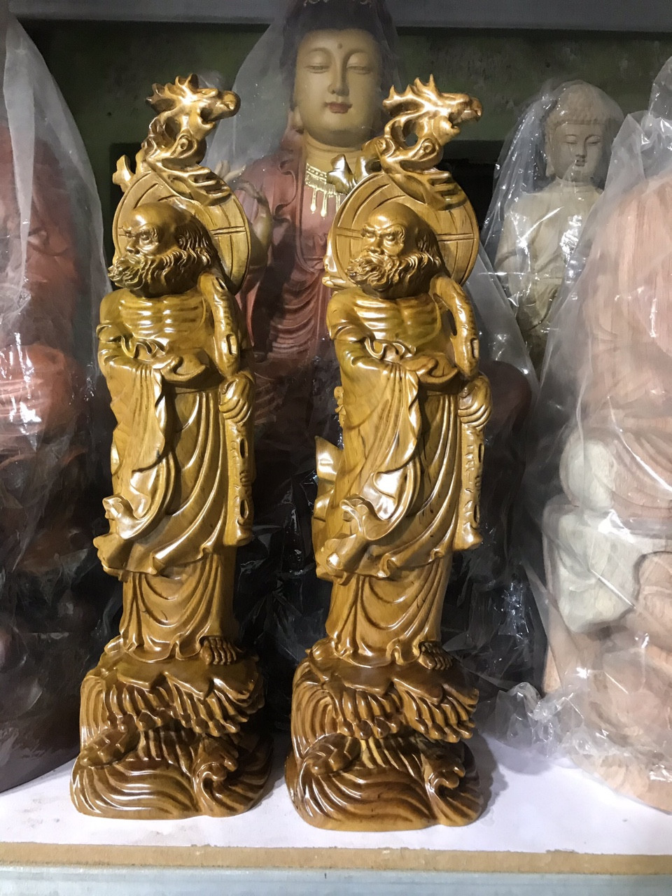 Tượng đạt ma sư tổ thuần nghê cao 20 30cm gỗ bách xanh