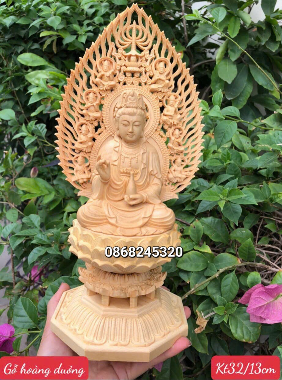 ✨Tượng mẹ phật bà quan âm bồ tát bằng gỗ hoàng dương kt cao 31×13cm