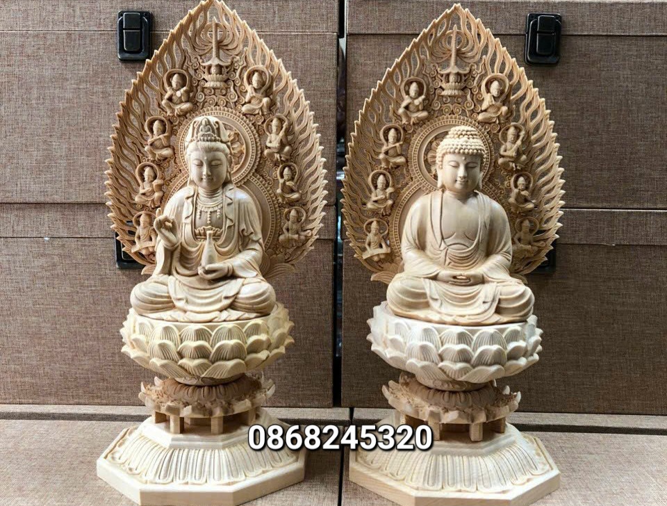 _ Bộ tượng phật tây phương tam thánh được làm bằng chất liệu gỗ gõ vàng liền khối tự nhiên 100% _Kt cao tổng 90×48×48cm _ Bộ tượng phật tam thánh được trạm khắc vô