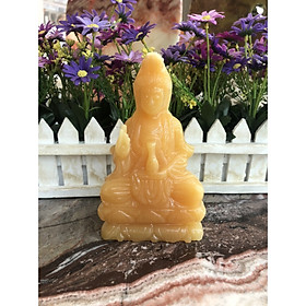 Tượng Phật Quan Âm Đá Lưu Ly Vàng Mới để trong xe hơi hoặc để bàn cao 12cm đk 7cm đế 5cm Mệnh Kim mệnh Thổ mệnh Thủy ạ *** Tượng Phật Quan Âm Đá