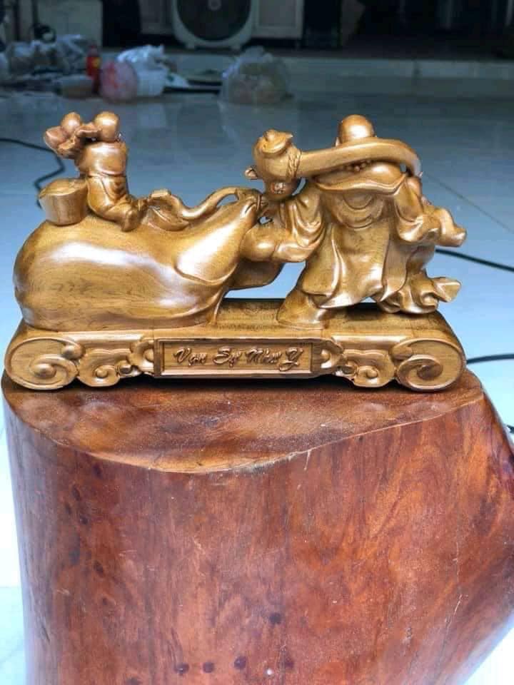 _ Tượng tùy duyên đụoc làm bằng chất liệu gỗ bách xanh liền khối tự nhiên 100% _ kt cao 15x6x5cm _ Tượng được chạm khắc gọt tỉa vô cùng ti mỉ tinh xảo kỳ