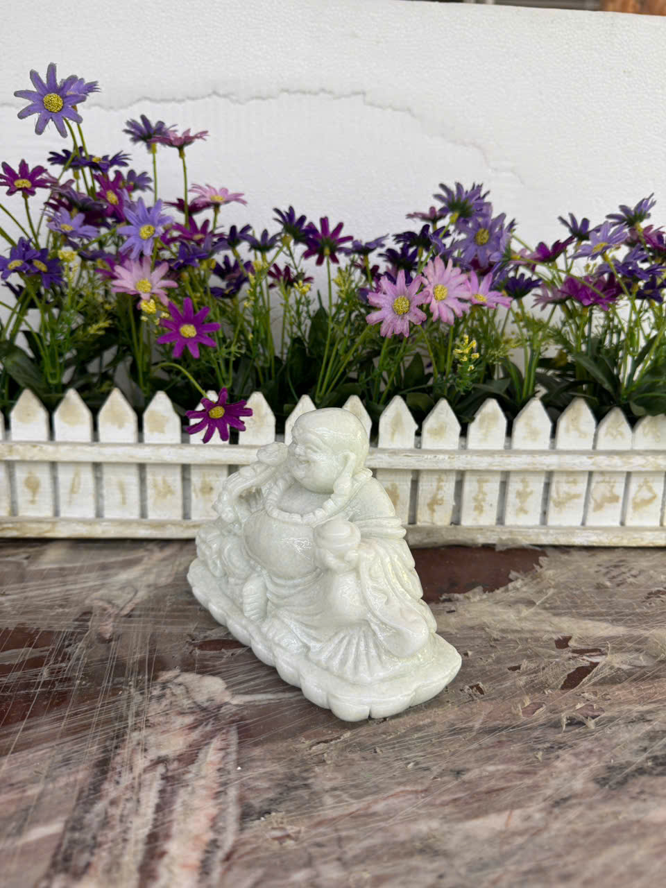 Chất liệu: Đá ngọc Hoàng Long Kích thước: Dài 50 cm x Rộng 20 cm x Cao 34 cm Khối lượng: 40 kg Phật Di Lặc trong Phong thủy Còn gọi là "Phật Cười", Di