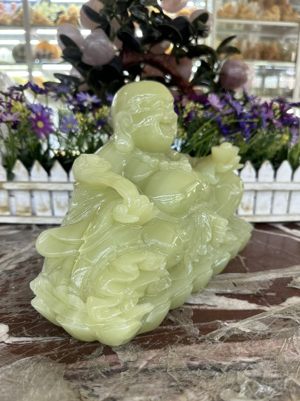 TP: Tượng Phật Di Lặc Như Ý - Ngọc Onyx xanh #phongthuygiagoc