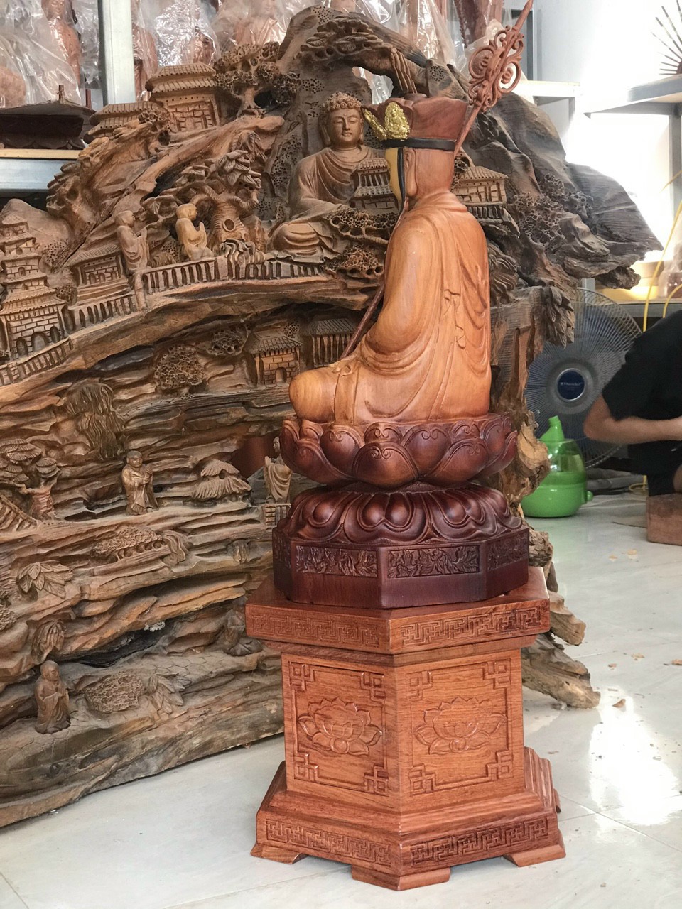 Tượng Phật Bà được chạm khắc vô cùng tỉ mỉ , nổi bật thần thái “ từ bi hỉ xả “ của Phật Bà Quan Âm luôn che chở, cứu giúp chúng sinh. Tượng có