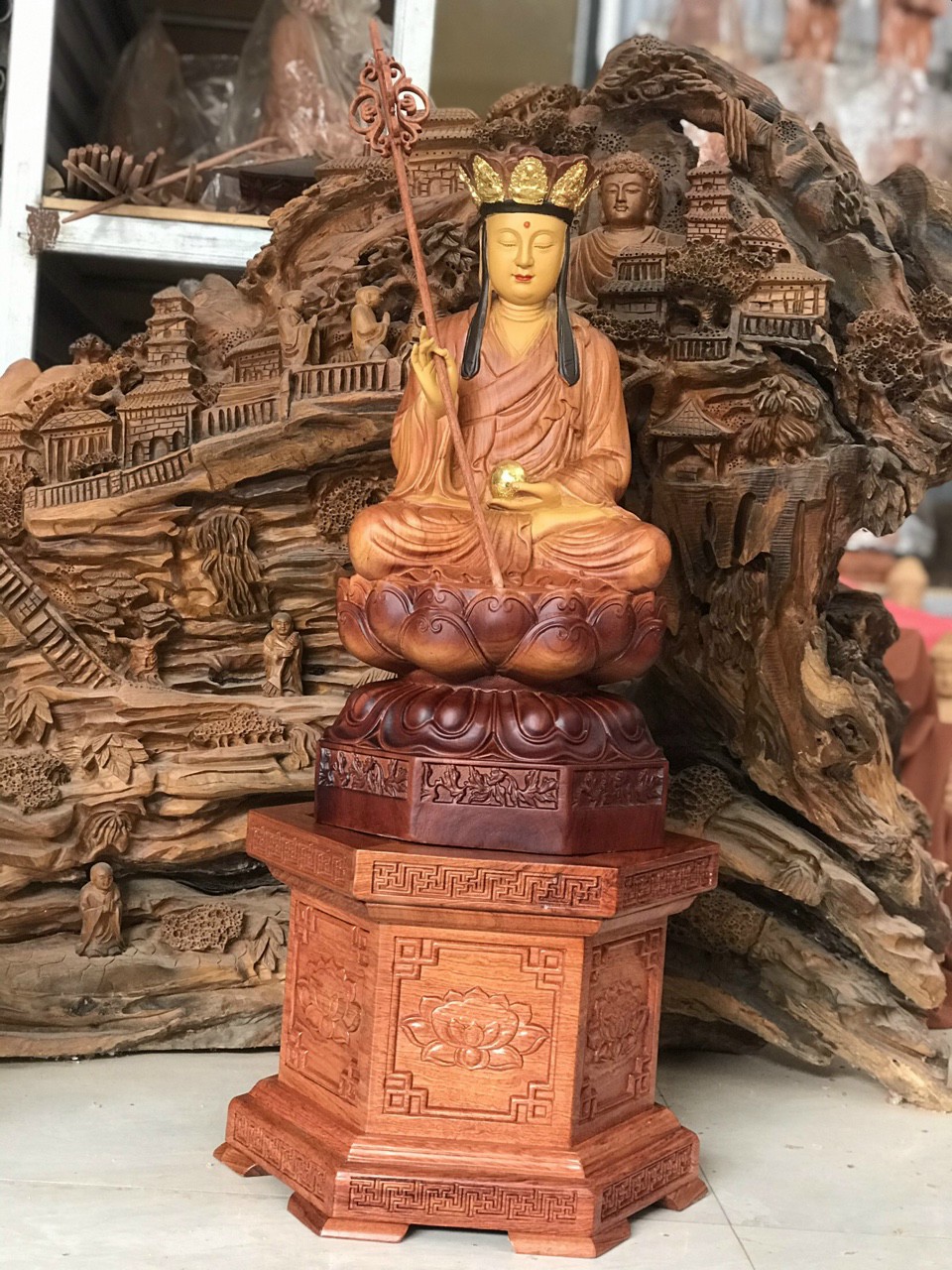 Mua tại TiktokTượng phật địa tạng vương bồ tát được làm bằng chất liệu gỗ hương đá liền khối tô làm mầu giả cổ Kích thước cao 40×15×15cm _ Tượng phật địa tạng vương bồ tát được trạm khắc tỉ mỉ tinh sảo kỳ công ,Tượng được làm và hoàn thiện do bàn tay khối óc tài hoa ,Từ những người thợ dầy rặn kinh nghiệm cũng như tay nghề cao trong làng nghề nghề truyền thống ,Chính vì thế tượng phật đị tạng vương bồ tát đã đáp ứng đầy đủ những tiêu trí ( Đẹp bền rẻ ) Thẩm mỹ nghệ thuật với chất lượng tuyệt vời