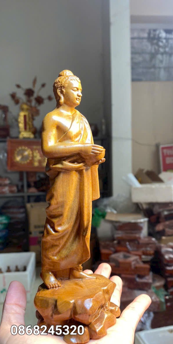 ✨Tượng phật thích ca khất thực bằng gỗ bách xanh thơm nức kt cao 20×7×6cm