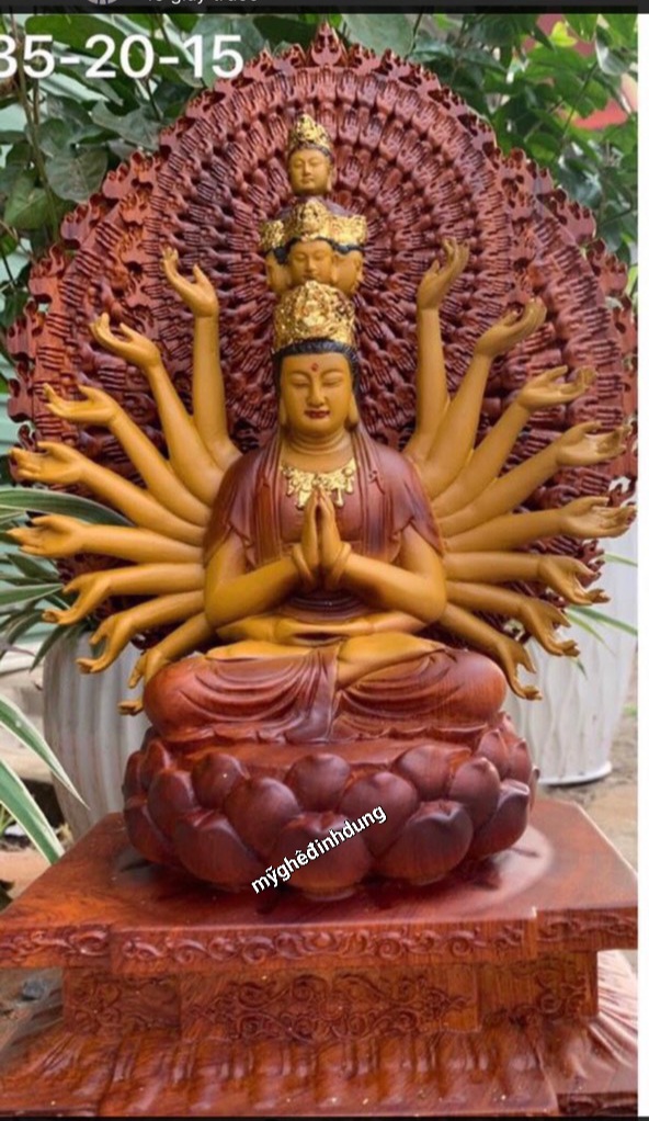 Mua tại TiktokTượng phật thiên thủ thiên nhãn được làm bằng chất liệu gỗ hương đá tự nhiên 100% Kt cao 35×20×15cm _ Tượng được chạm khắc tỉ mỉ ,tinh sảo kỳ công .Đi hầu hết tất cả mọi chi tiết góc ngách nội dung hoa văn của tượng đều gọt tỉa chỉnh sửa sắc nét hoàn toàn bằng tay thủ công .Đồng thời tượng được kiểm định kỹ lưỡng khắt khe ,như cho vào thẩm sấy cho gỗ khô kiệt .Mục đích trống dập nứt vênh mo mối mọt .Kết hợp với trà nhám ,đánh giấy giáp nhiều nước sờ mát lạnh .Song cho vào phun lót làm bóng mờ để giữ lại mầu sắc vân gỗ tự nhiên .Cũng như pu giả cổ đẹp long lanh như ảnh trên .Tượng được làm và hoàn thiện do bàn tay khối óc tài hoa ,từ những người thợ giàu kinh nghiệm trong làng nghề truyền thống .