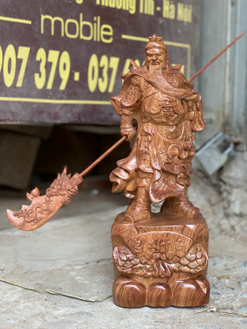 Tượng Quan Công đứng chống đao cao 1m | Quan Vũ gỗ hương đẹp, liền khối